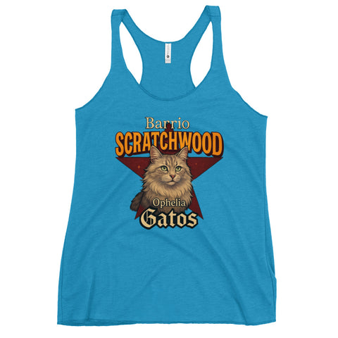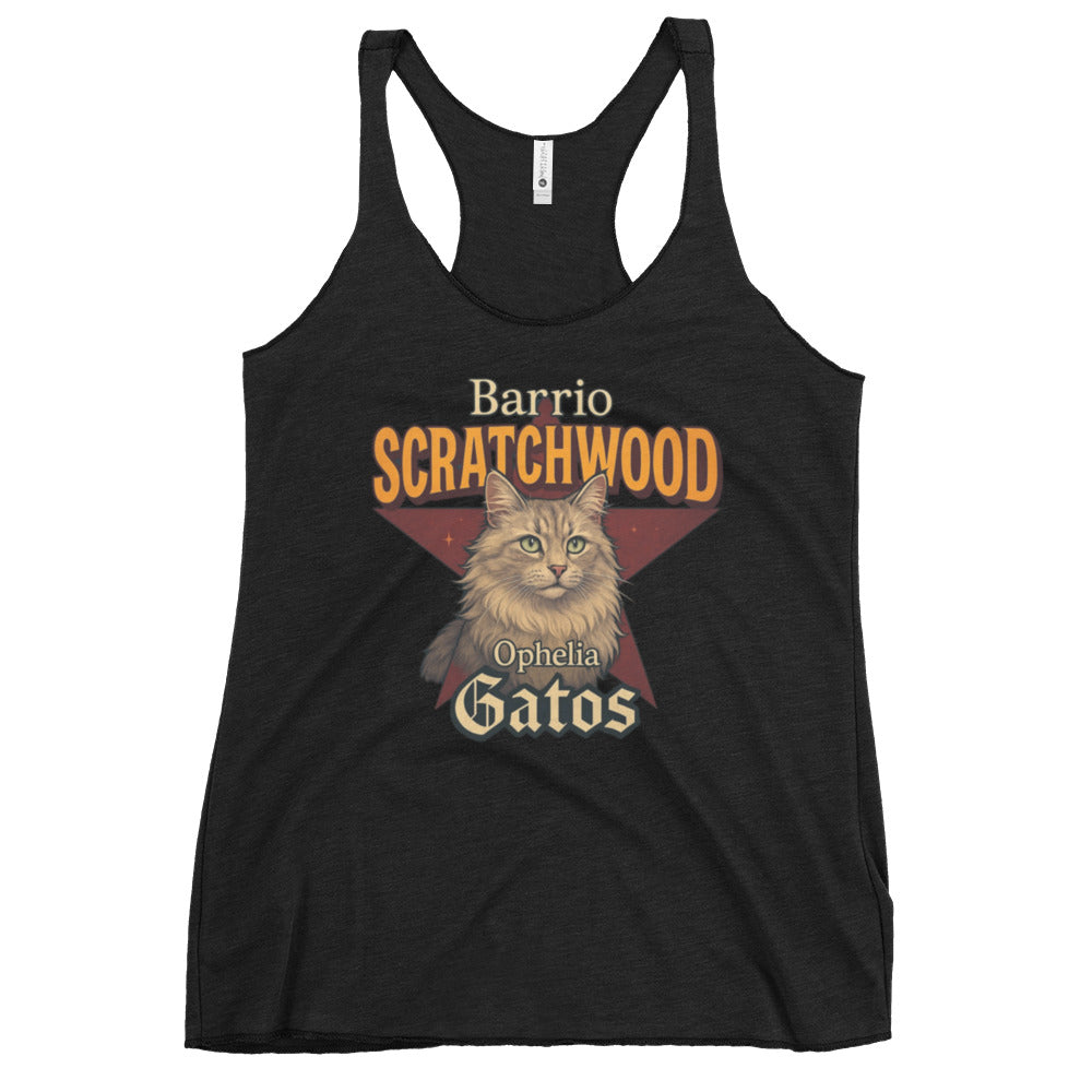Women's Racerback Tank Barrio Scratchwood Gatos T-Shirt